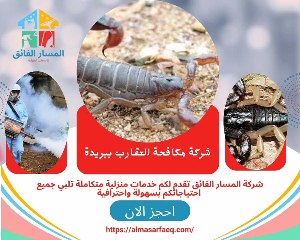 بتزامن هذه الخدمات، تبرز شركة مكافحة العقارب ببريدة كحلاً موثوقًا في مجال مكافحة العقارب، حيث تهدف إلى تحقيق بيئة آمنة وصحية للجميع.